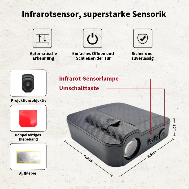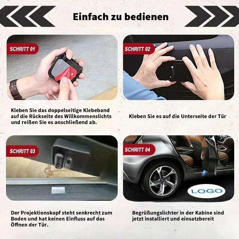 De Auto HD Welkomstverlichting biedt een verrassend heldere projectie die de grond rondom uw voertuig verlicht. Dankzij het krachtige LED-licht zijn er geen donkere gebieden meer die voor zorgen kunnen zorgen. Eenvoudig te installeren zonder boren of bedrading – de deuren worden direct lichtbronnen! Geniet van het comfort en de veiligheid die dit creatieve product in uw dagelijks leven brengt.