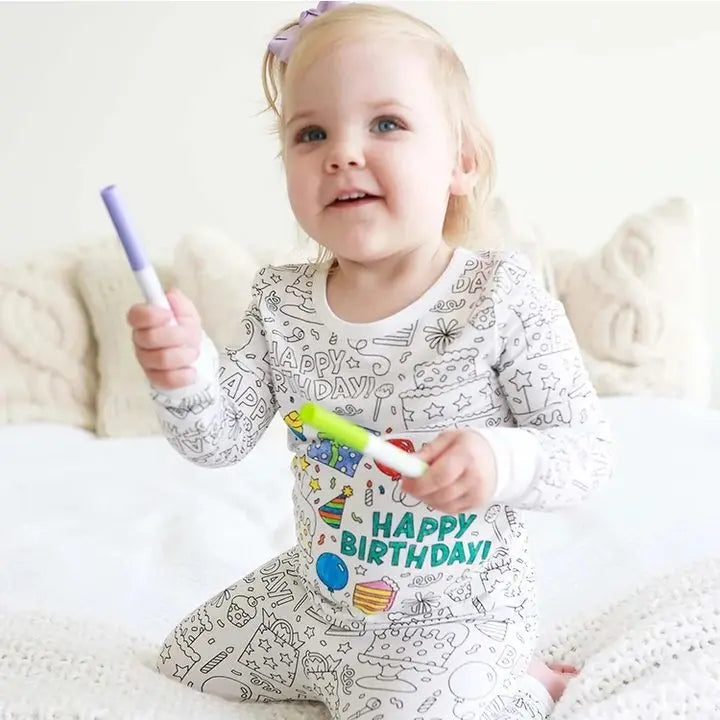 Lassen Sie Ihr Kind im MagiColor Schlafanzug zeichnen. Die hautfreundlichen, ungiftigen Stifte (separat erhältlich) sorgen für künstlerische Momente, die den Tag perfekt beenden.